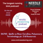 This week on the Erotic Awakening Podcast, @dananddawn share their opinions on long-term polyamory myths… ……plus, they chat about their experience at the Columbus, OH KIC party and their thoughts on Belonephilia, the love of sharp, pointy things. Enjoy!!! Dan and dawn Discounts on our books, free eBooks, weekly exclusive content, and